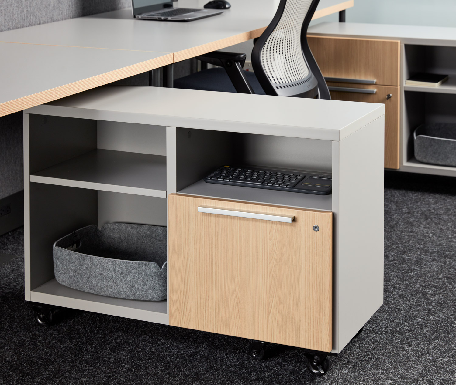 A comprehensive storage solution, Anchor scales from freestanding and mobile options to private office and total workstation solutions. Anchor components are designed to work together to create tailored solutions for every storage need.