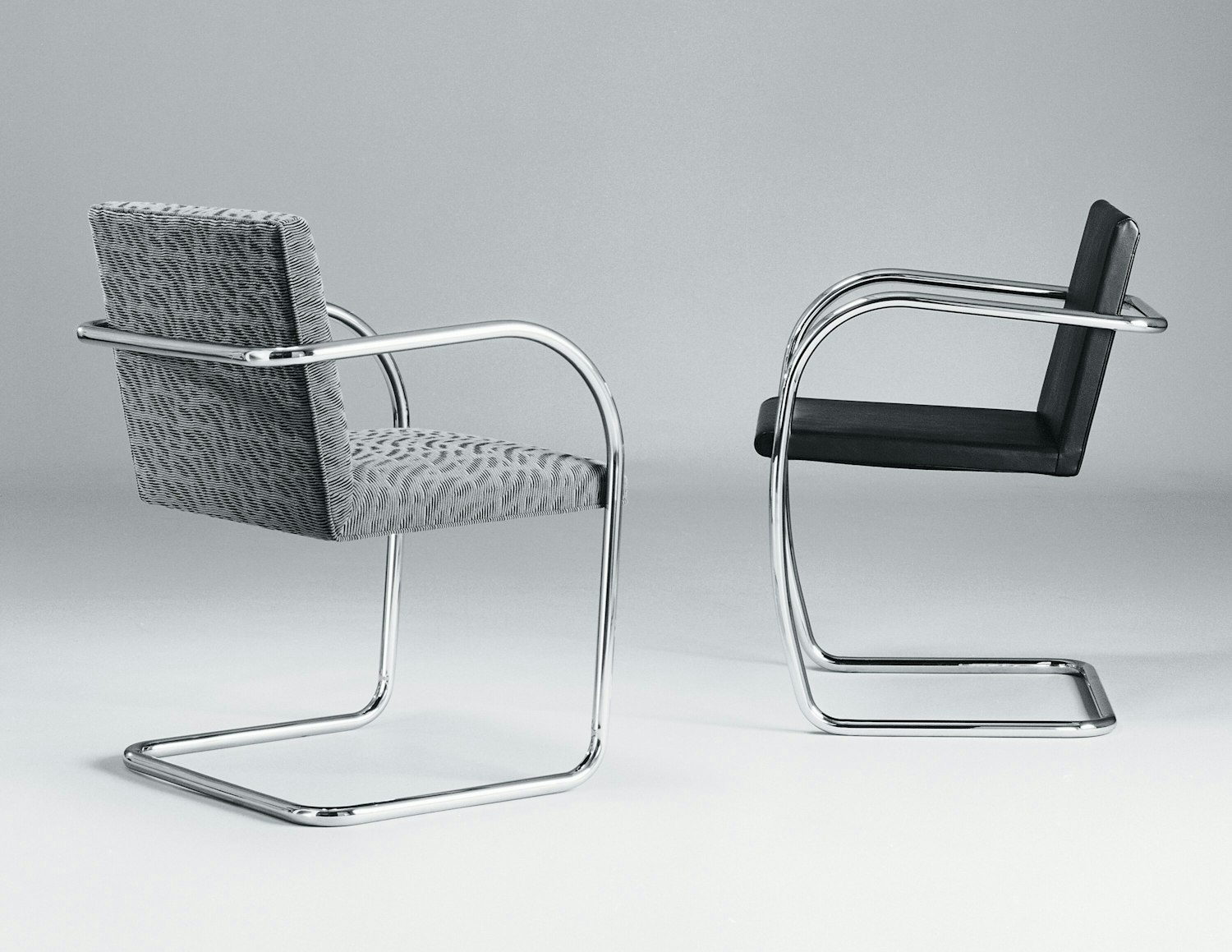 Designed by Ludwig Mies van der Rohe for his renowned Villa Tugendhat in Brno, Czech Republic, the Brno Chair reflects the groundbreaking simplicity of its original environment. The cantilevered seat bounces slightly with the sitter, and its tubular frame is offered in a choice of three finishes. Celebrated for its lean profile, clean lines, and meticulous craftsmanship, the Brno Chair is an icon of 20th-century design.