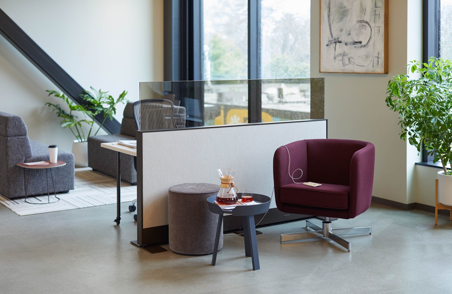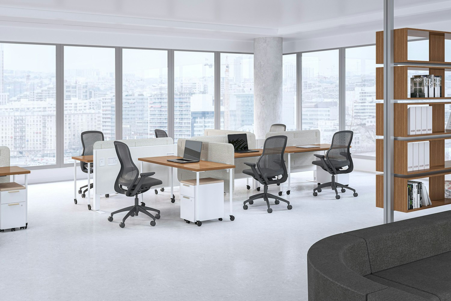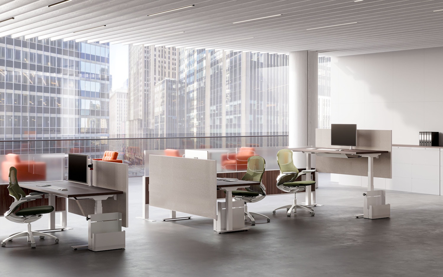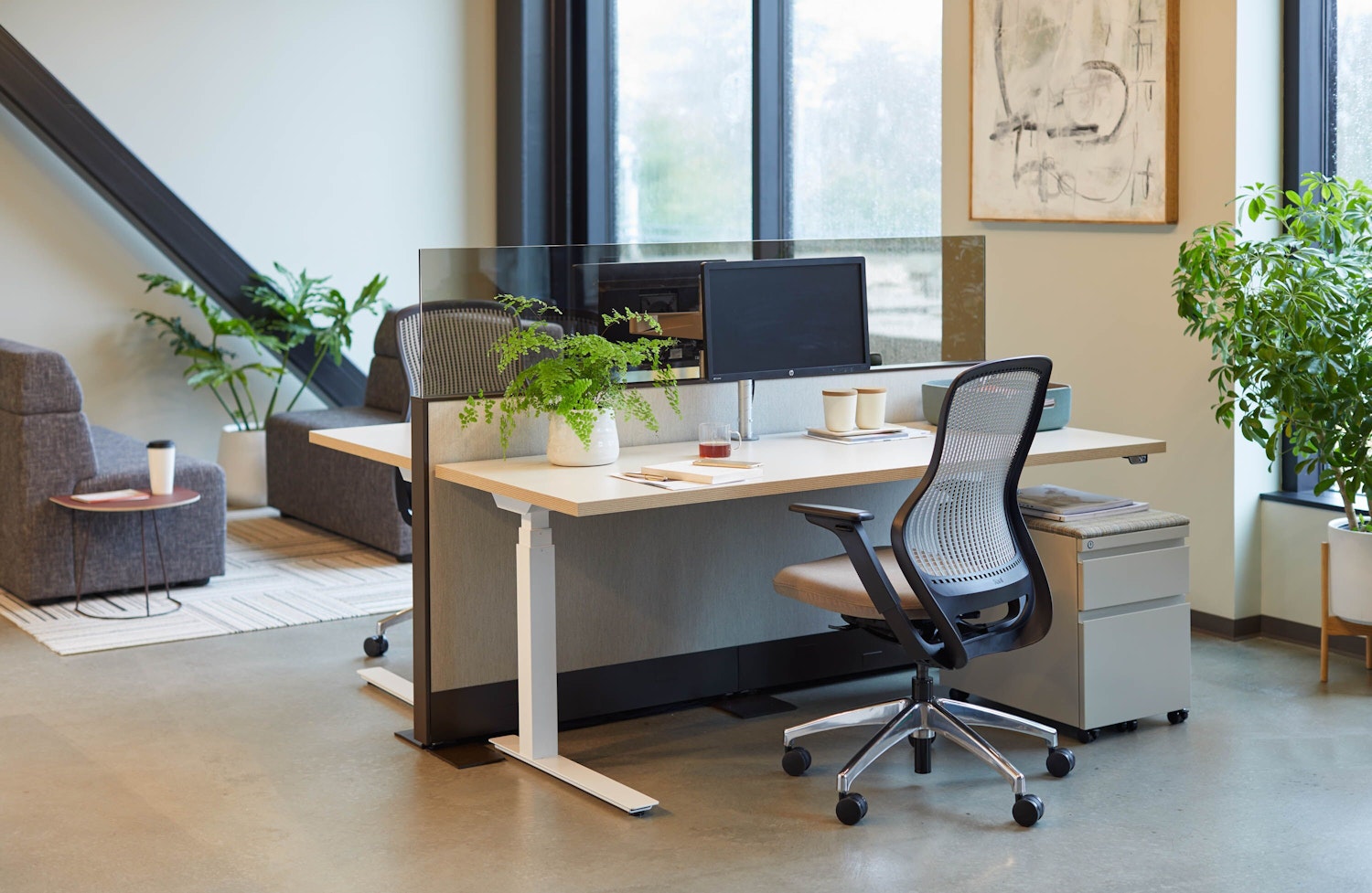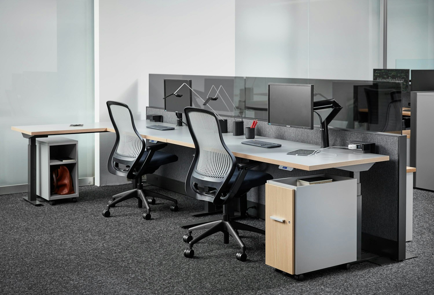 The Elevated Spine sits off the floor and is suitable for straight planning or 90 degree planning with gallery panels. This panel-based technology spine provides flexible power and data capability and can be linked to connect multiple workstations. The elevated design has a light aesthetic, and because the bottom of the spine is open, power can enter anywhere along the lower rail.