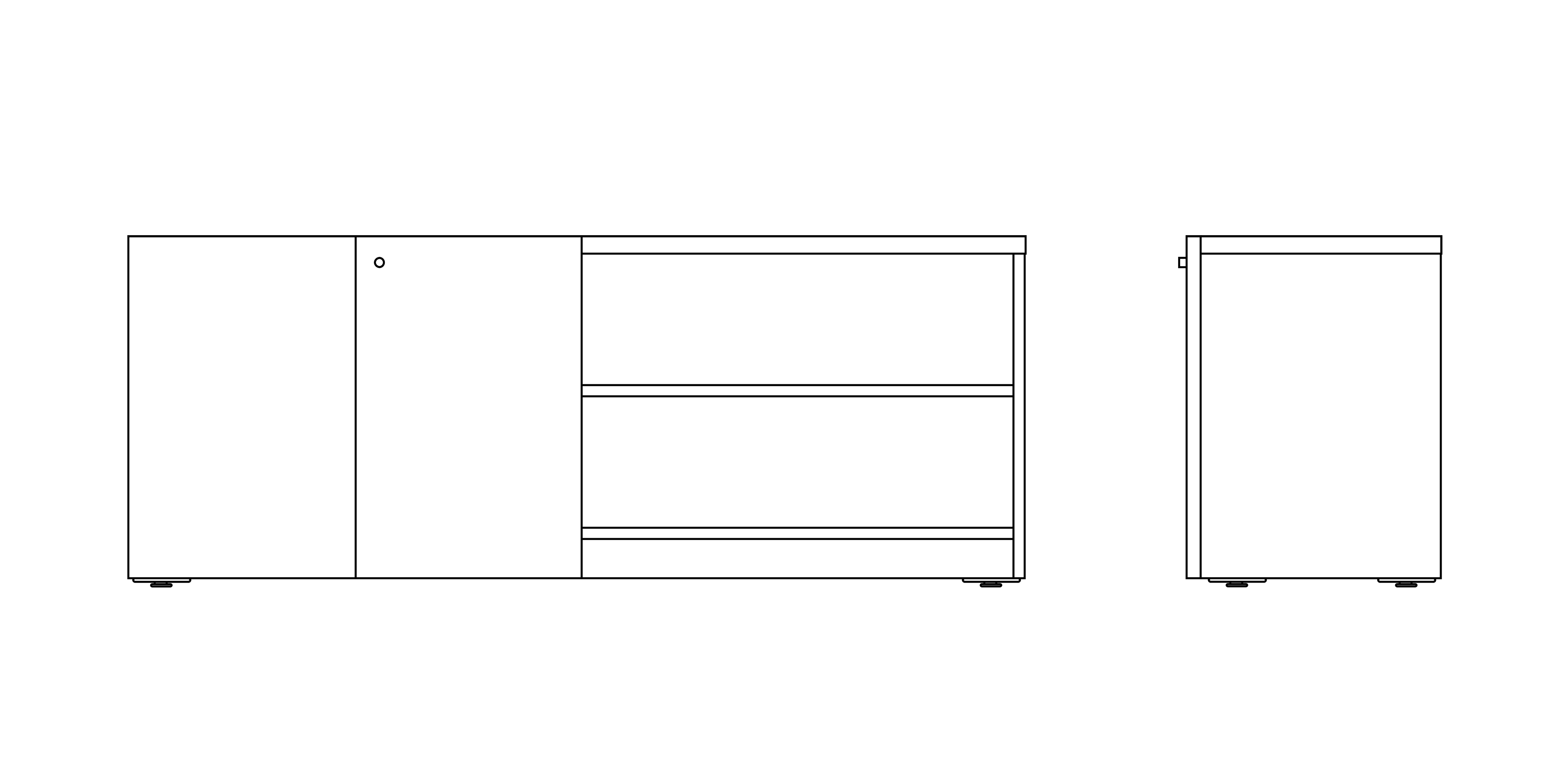 Reff Storage for Dividends Skyline Credenza available in 1-Door, 2-Door, 4-Door, Combination, and Open configurations