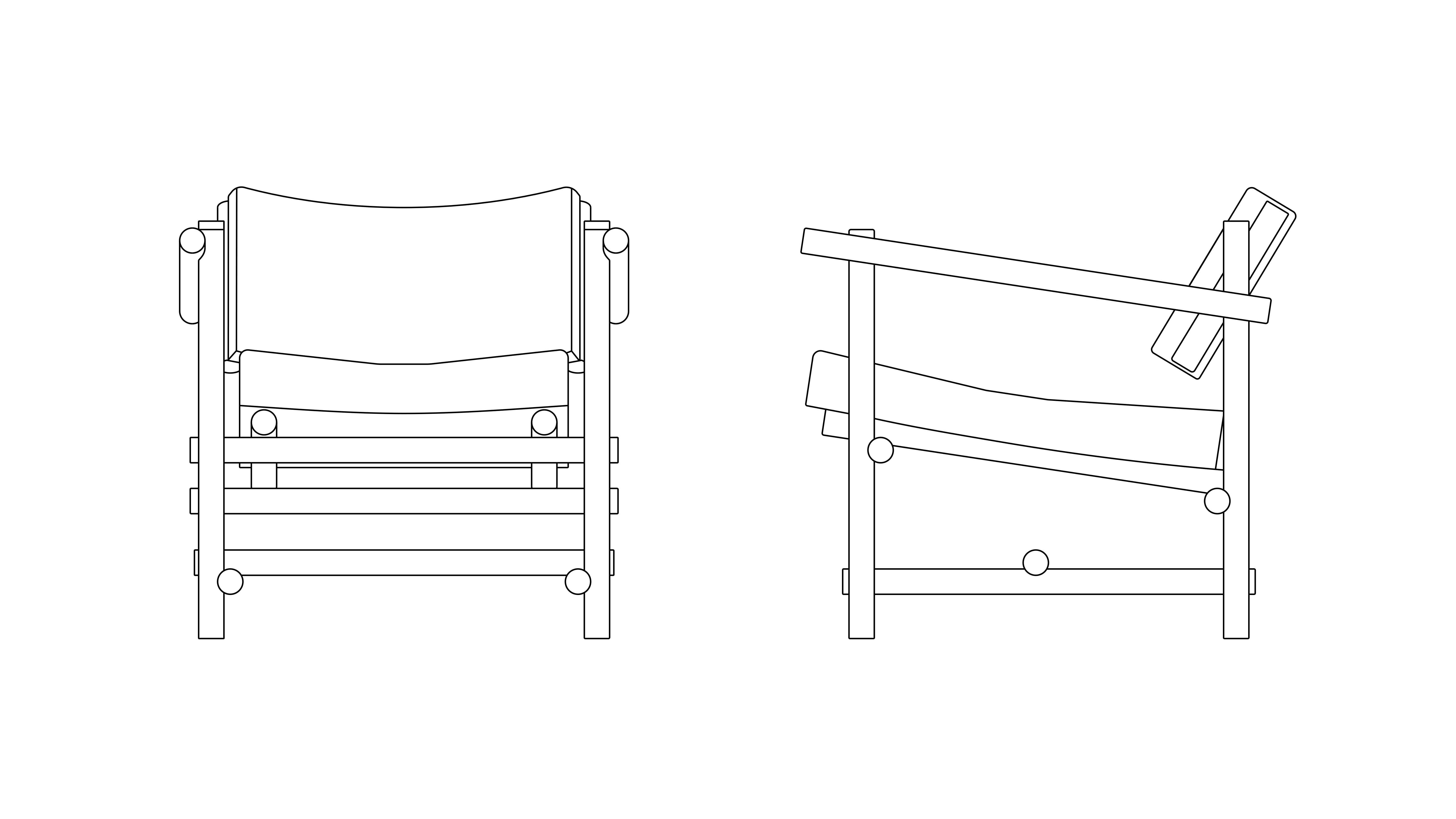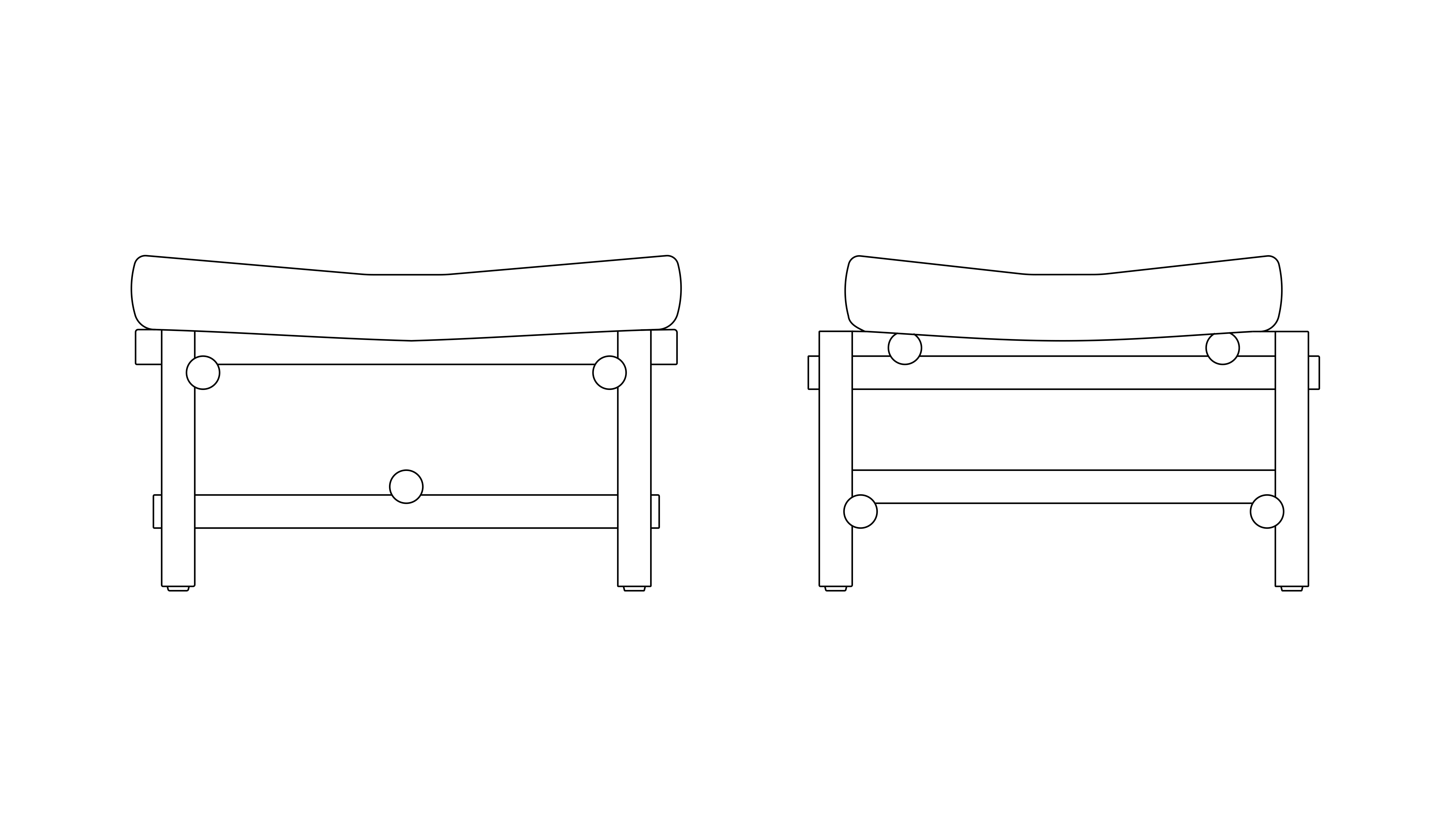 Muecke developed a distinct joinery system that repeats throughout the collection. Rounded dowels pass on adjacent planes, connected where they meet by a floating tenon.