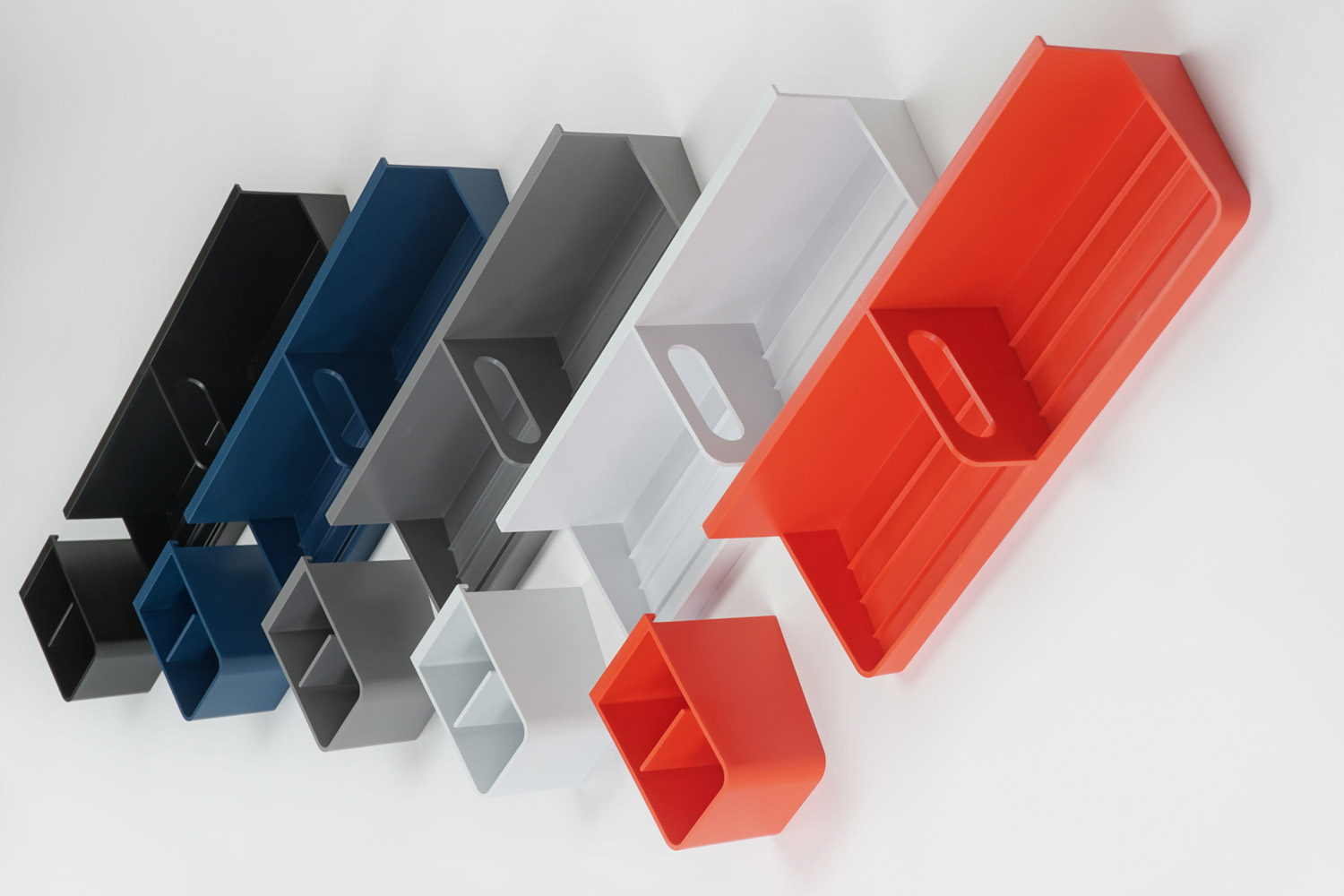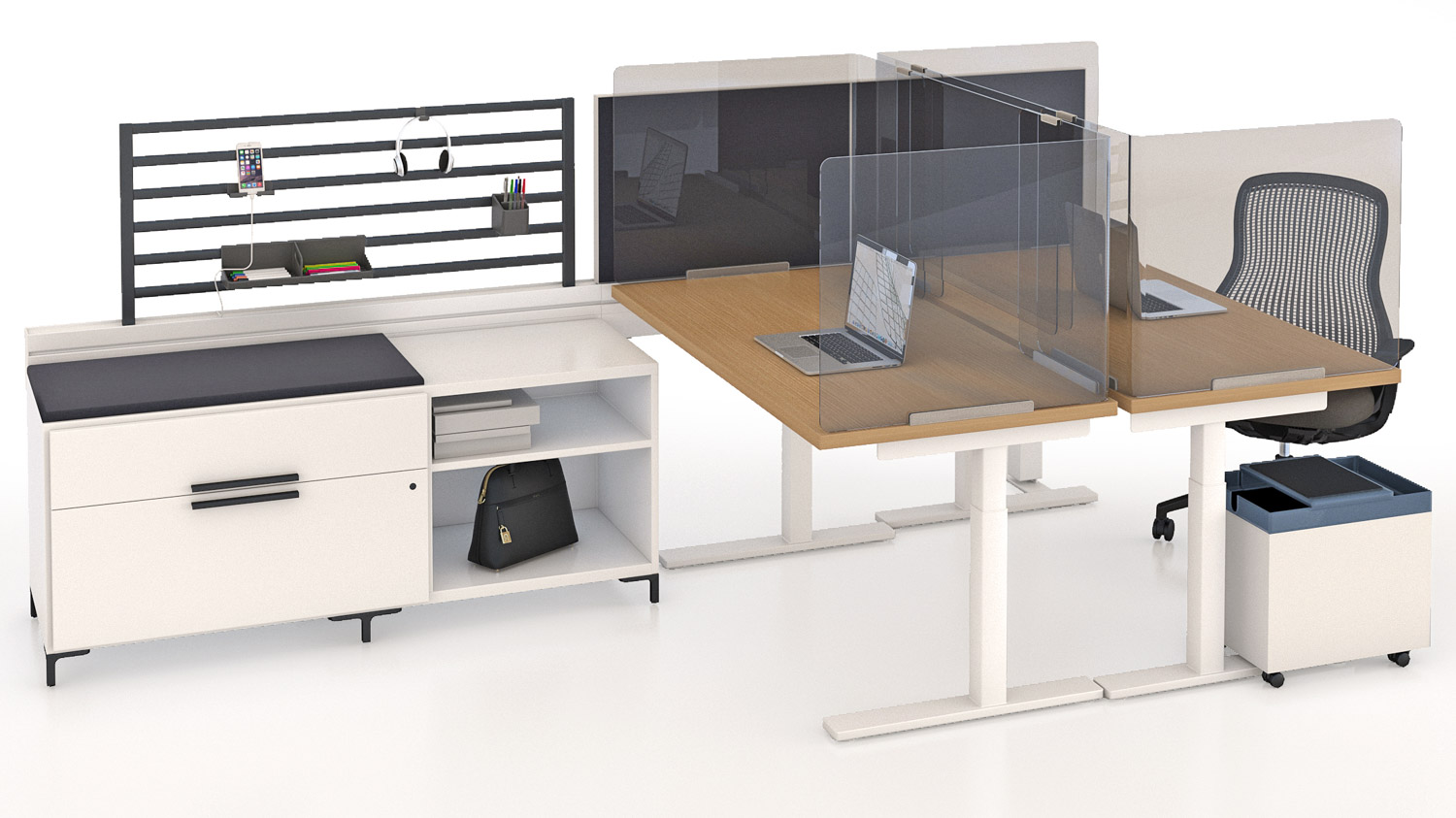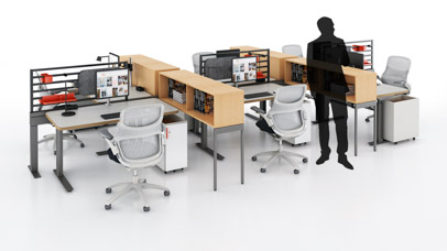 The Antenna ladder screen's simple, people-centered design delineates space and supports various combinations of accessories, while allowing light to filter into the workstation. Thoughtful details, like the forward lean of the cup and tray which orient tools towards the user, and the tray’s integrated handle for taking supplies on the go, support comfort, productivity, and flexibility in the workplace.