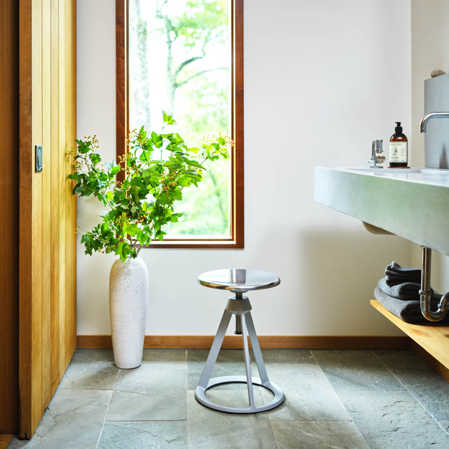 Taking cues from the aesthetic principles of Modernism and pragmatic considerations of the height-adjustable stools manufactured for sewing professionals in the mid-century era, the Piton™ Stool and Table are equally well suited for industrial tasks and domestic settings.
