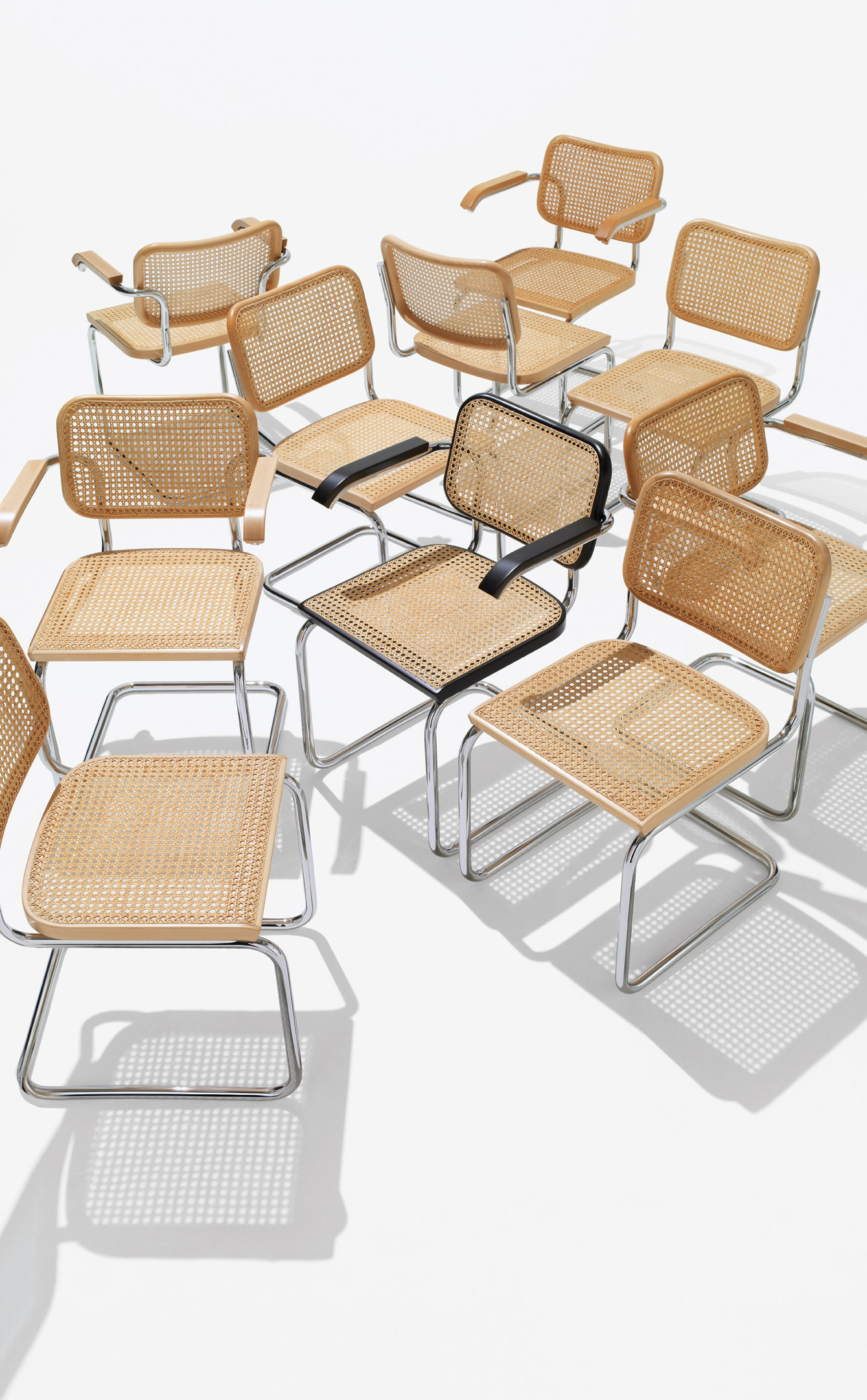 Designed in 1928, Marcel Breuer’s Cesca Chair married traditional craftsmanship with industrial methods and materials to help make tubular steel furniture an international sensation and a modern institution. The cantilevered form exploits the possibilities unique to the material and gives the chair added flexibility and comfort. Offered in arm and armless versions with a fully upholstered seat and back, or with hand-woven cane inserts.