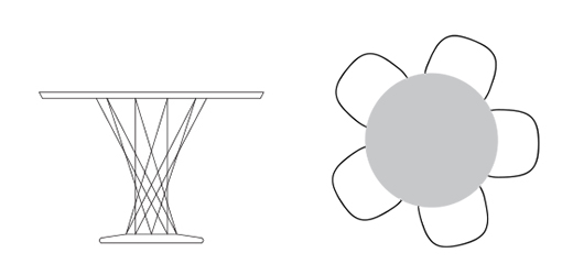 After making the switch from plastic to wire and scaling the design to table size, Knoll marketed the Cyclone alongside the Bertoia wire chair collection for several years. The table was taken out of production in 1974, but was reintroduced in 2003. In collaboration with the Noguchi Foundation, the design is meticulously reproduced using Noguchi’s original drawings.