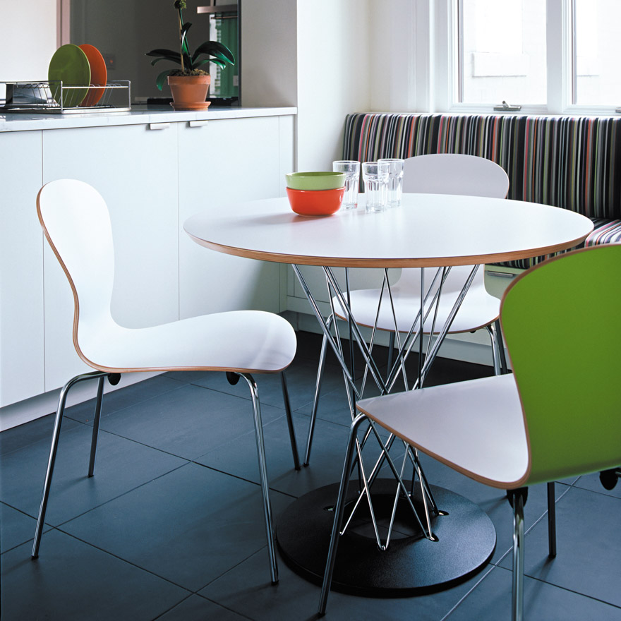 After making the switch from plastic to wire and scaling the design to table size, Knoll marketed the Cyclone alongside the Bertoia wire chair collection for several years. The table was taken out of production in 1974, but was reintroduced in 2003. In collaboration with the Noguchi Foundation, the design is meticulously reproduced using Noguchi’s original drawings.
