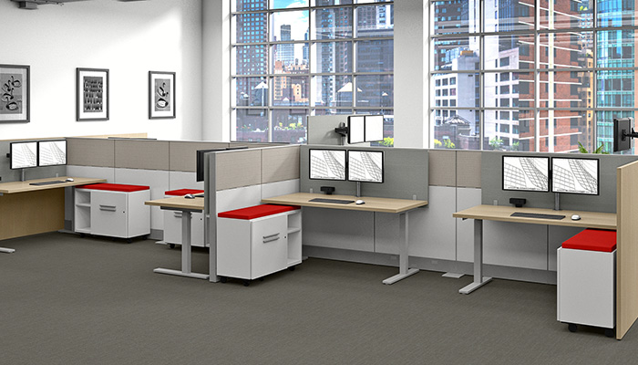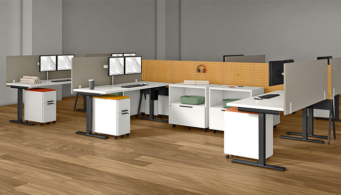 Establish space boundaries to enhance focus work and promote social distancing with Dividend Horizon Network Screens. Screen options available for both back and sides of worksurfaces for smart positioning.