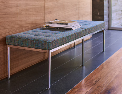 Designed in 1954 as what Florence Knoll modestly referred to as one of the “fill-in pieces that no one else wants to do,” the Florence Knoll Bench now stands as a defining example of modern design. Consistent with all of her designs, the bench has a spare, geometric profile that reflects the objective perfectionism and rational design approach Florence Knoll learned from her mentor, Mies van der Rohe.