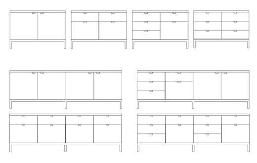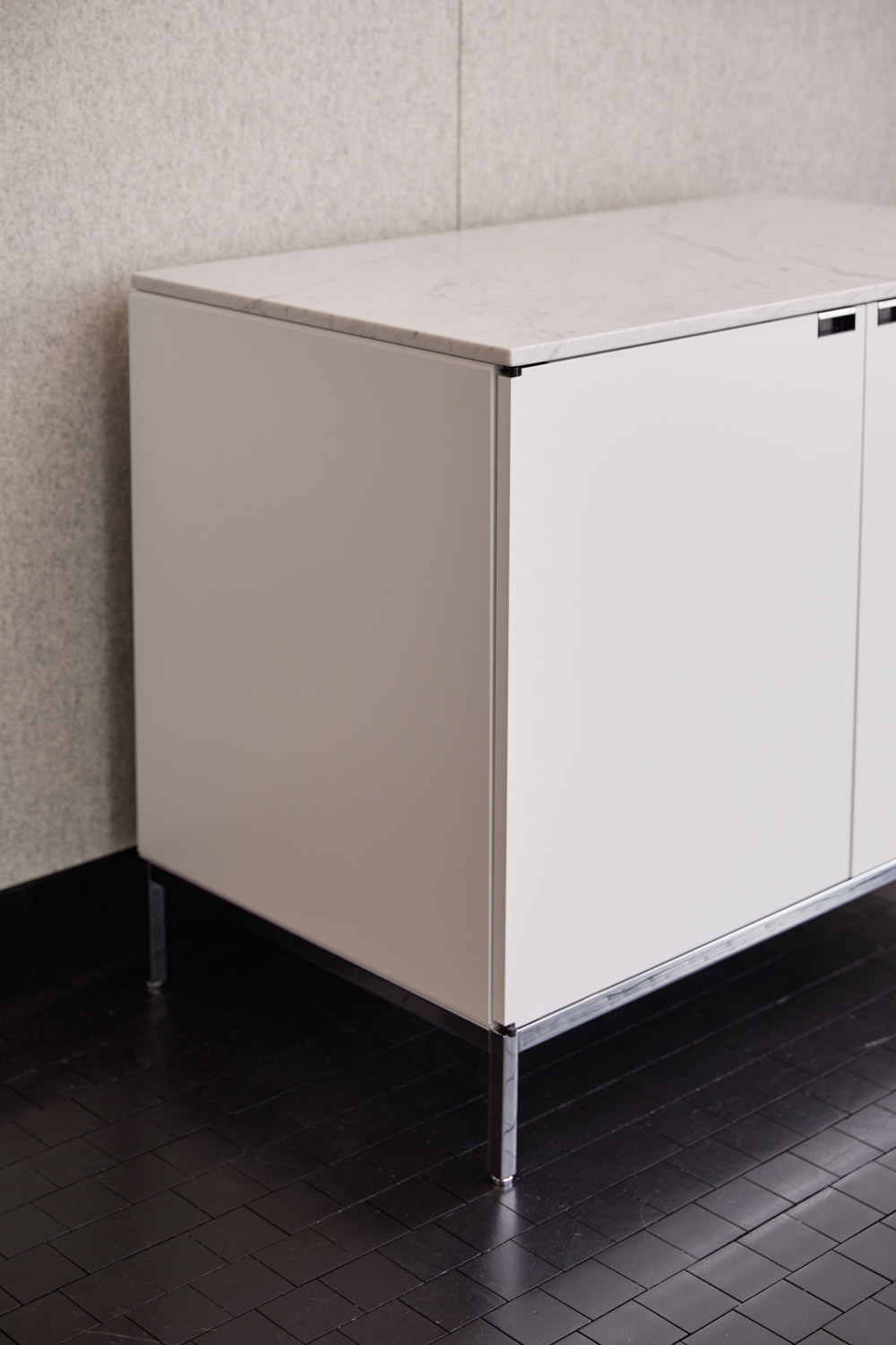 When Florence Knoll revolutionized private office design by replacing the typical executive desk with a table desk, she needed a place for all the filing and storage that had traditionally lived in desk drawers. Her solution, executed in typical Florence Knoll elegance, was the low credenza. “I did it because I needed the piece of furniture for a job and it wasn’t there, so I designed it.” Perfectly proportioned and immaculately detailed, the design embodies Florence Knoll’s adherence to the teachings of her favorite mentor, Mies van der Rohe.