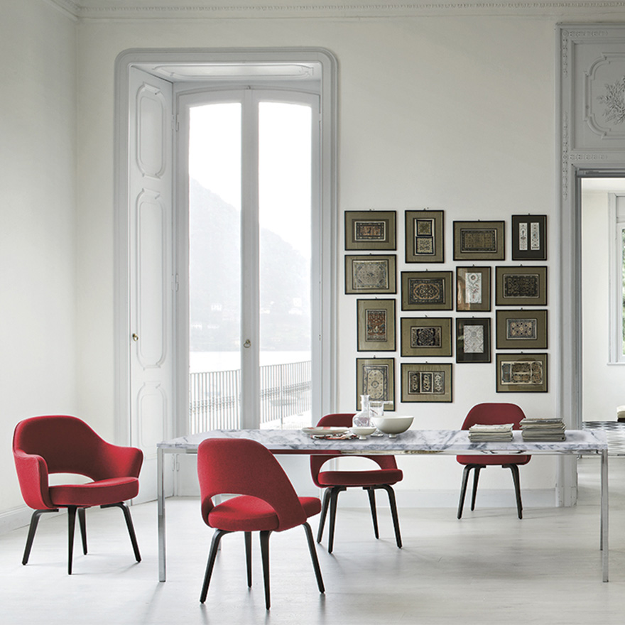 Among these were a series of End Tables that, in their slim frames, extended the aesthetic of modernism to every corner of the office. In celebration of the designer’s 100th birthday, Knoll introduced new products to the Florence Knoll Collection, including a line of Dining Tables and a Mini Desk, that echo the successful forms of her past designs and translate Shu’s architectural sensibilities from the corporate office to the home.