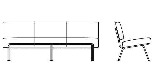 Model 33 lends itself easily to different types of upholstery thanks to the rectilinear shape and streamlined construction of its cushions. The ideal opportunity to specify custom textiles, choose from colorful weaves to durable leather and vinyl, all with the high-quality craftsmanship, timeless aesthetics, and historical significance for which Knoll is known.