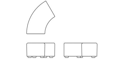• Four no-tool ganging brackets are standard on all pieces except stool and pouf