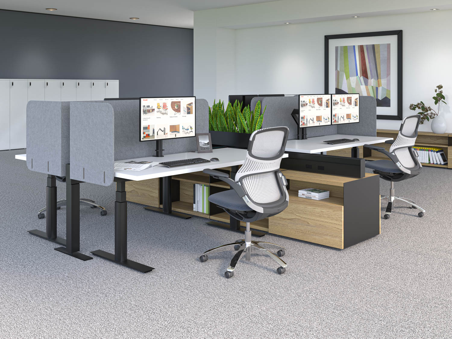Available in a variety of mounting options, k. screen Contour can be used on any table or desk with a flat edge regardless of a table’s support structure or accessories mounted under the top.