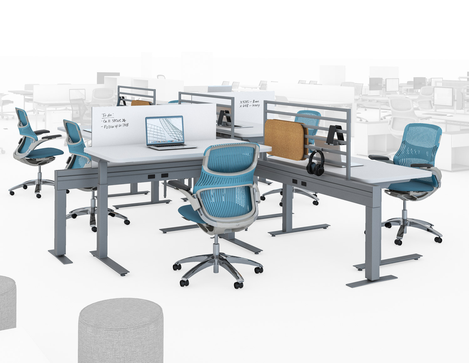 k. stand responds to the needs of today’s office by creating adaptable spaces that support work among groups in all areas of the workplace. k. stand easily accommodates desktop screens along with ergonomic KnollExtra accessories, including monitor arms and task lights.