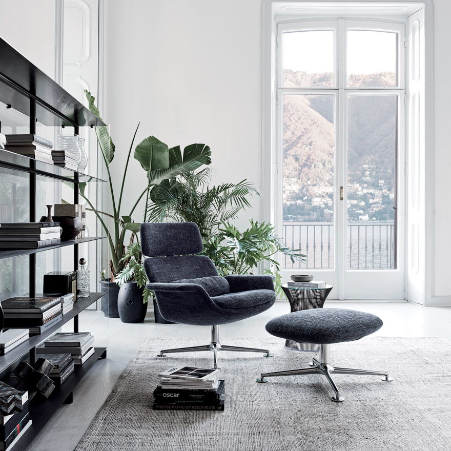 KN02 is a high-back lounge chair that offers extended and neutral positions, suitable for a quiet refuge. Its smooth reclining mechanism as well as its soft, supportive seat and back adapt to different postures, providing a remarkable freedom of movement.