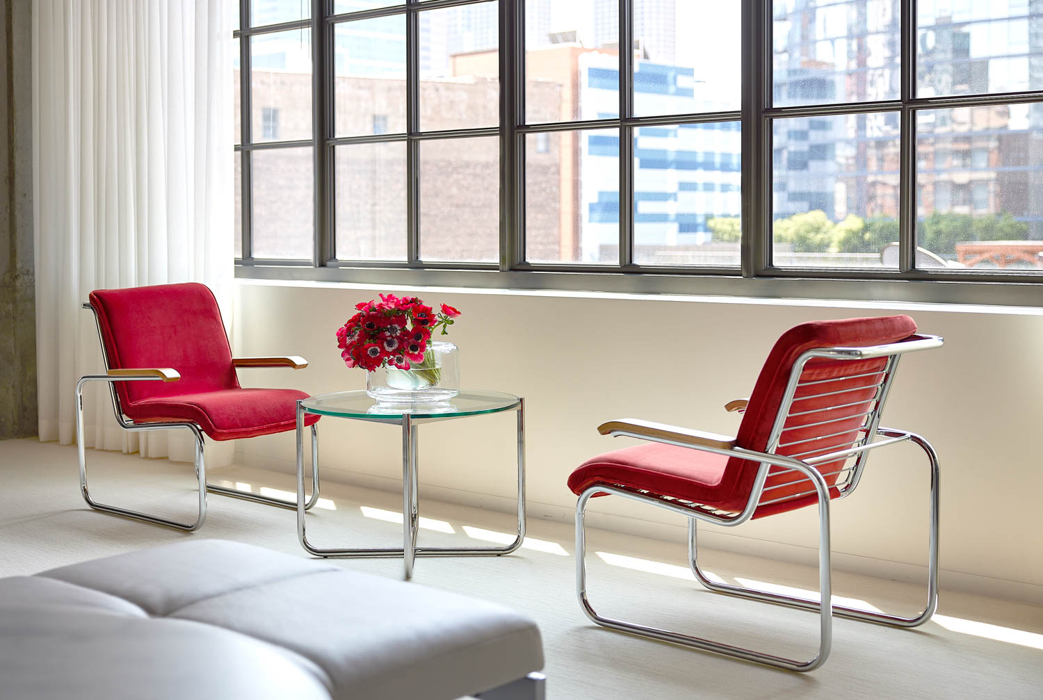 A champion of the modern movement and protégé of Bauhaus founder Walter Gropius, Marcel Breuer is equally celebrated for his achievements in architecture and furniture. His entire body of work, both architecture and furniture, embodies the driving Bauhaus objective to reconcile art and industry. While at the Bauhaus, Breuer revolutionized the modern interior with his tubular-steel furniture collection — inspired by bicycle construction and fabricated using the techniques of local plumbers. His first designs, including the Wassily, remain among the most identifiable icons of the modern furniture movement.