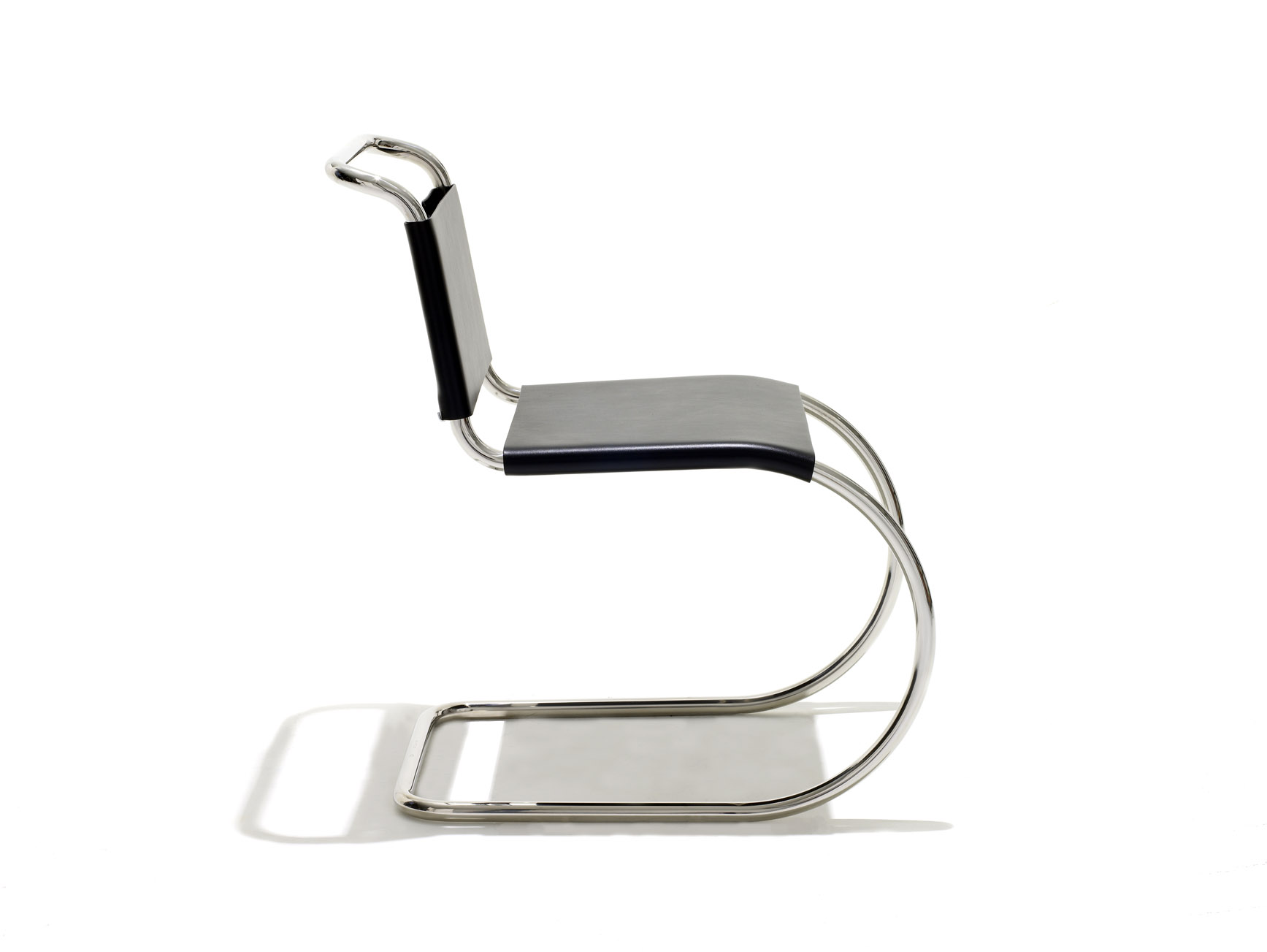 The origins of the bent-steel cantilevered chair are somewhat murky, but generally three names come up in the discussion. Marcel Breuer is widely credited with pioneering the exploration of the material, Mart Stam seems to be the first to conceive a “chair without back legs”, and Mies van der Rohe is remembered as the one who made it beautiful.