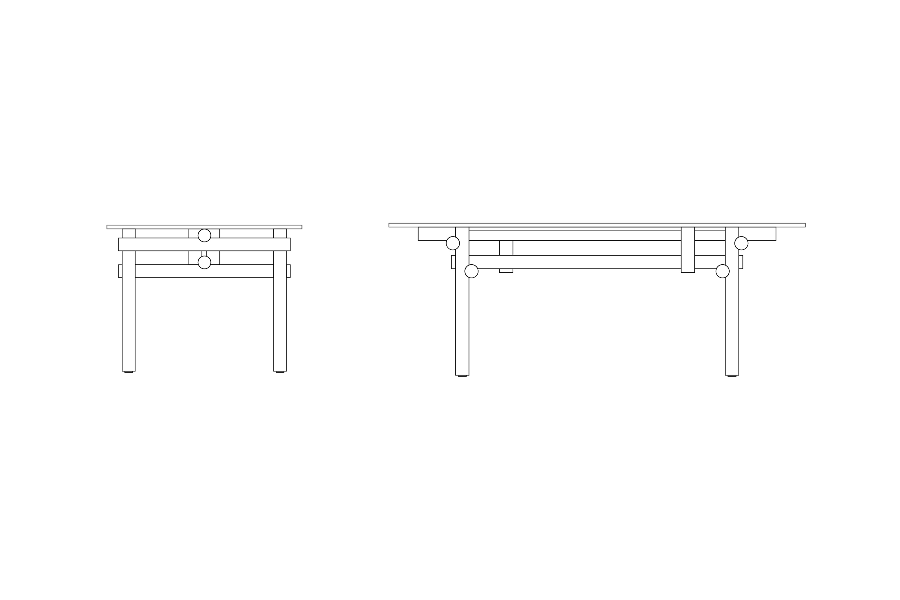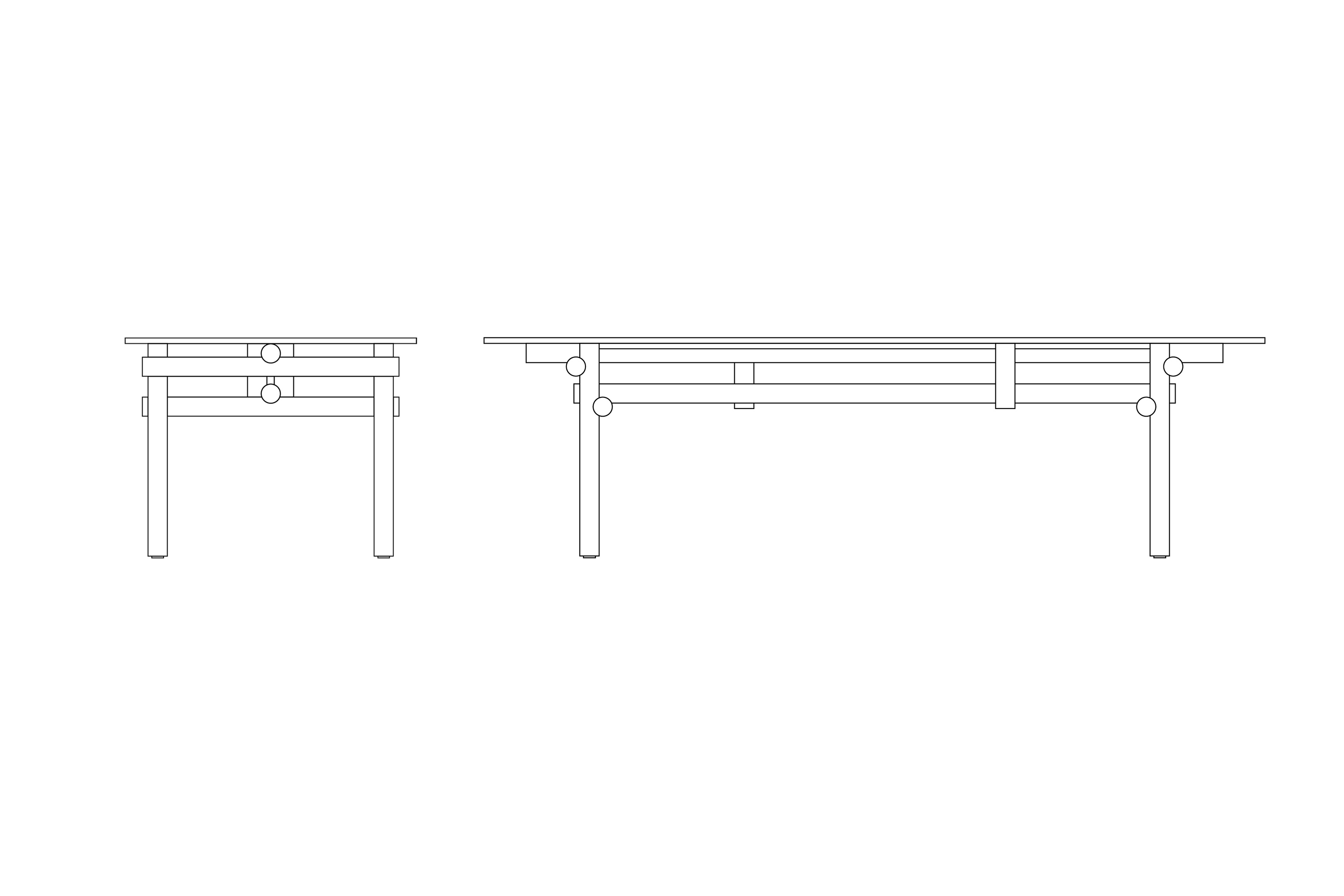 By rounding solid wood into cylindrical dowels, Muecke erased distinctions between face and edge grain and put end grain on view. To keep end grain exposed, the rounded wood pieces pass each other on nearby planes and connect where they meet by a floating tenon.
