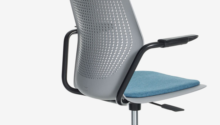 Therefore, each member of the MultiGeneration by Knoll family, which has continued to grow over the last 5 years, is designed to allow for and encourage movement, while still providing adequate support. The shape and material of the shell give the chairs a buoyancy that prevents the user from feeling “locked in” while the arm and leg positions allow for 270 degrees of movement.