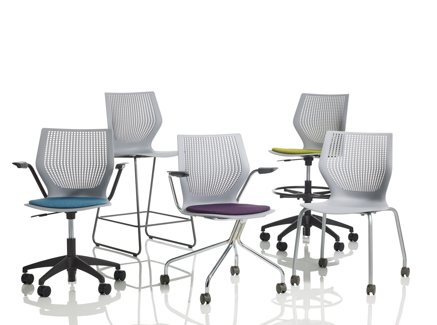 The MultiGeneration family offerns side chairs, light task chairs, high task chairs and stools, each with the consideration and ergonomics of a standalone seating solution.
