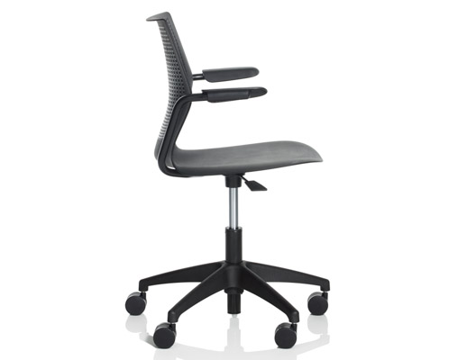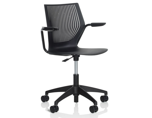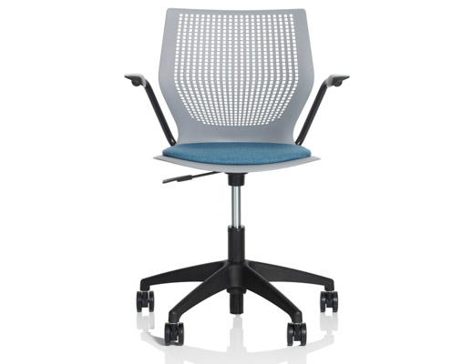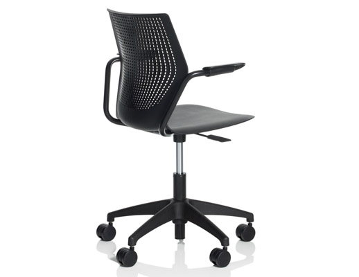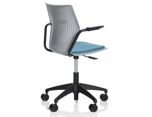 Therefore, each member of the MultiGeneration by Knoll family, which has continued to grow over the last 5 years, is designed to allow for and encourage movement, while still providing adequate support. The shape and material of the shell give the chairs a buoyancy that prevents the user from feeling “locked in” while the arm and leg positions allow for 270 degrees of movement.