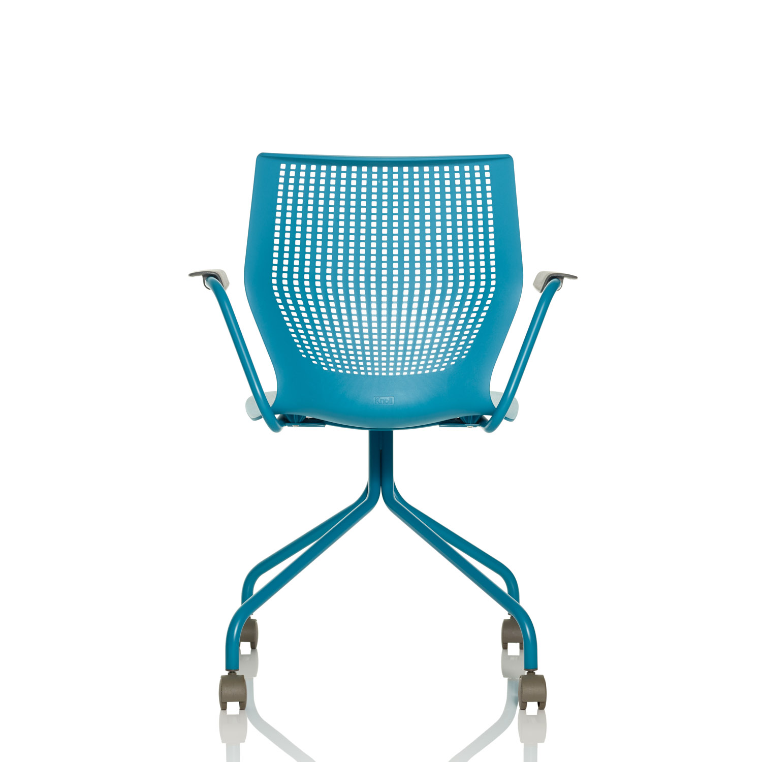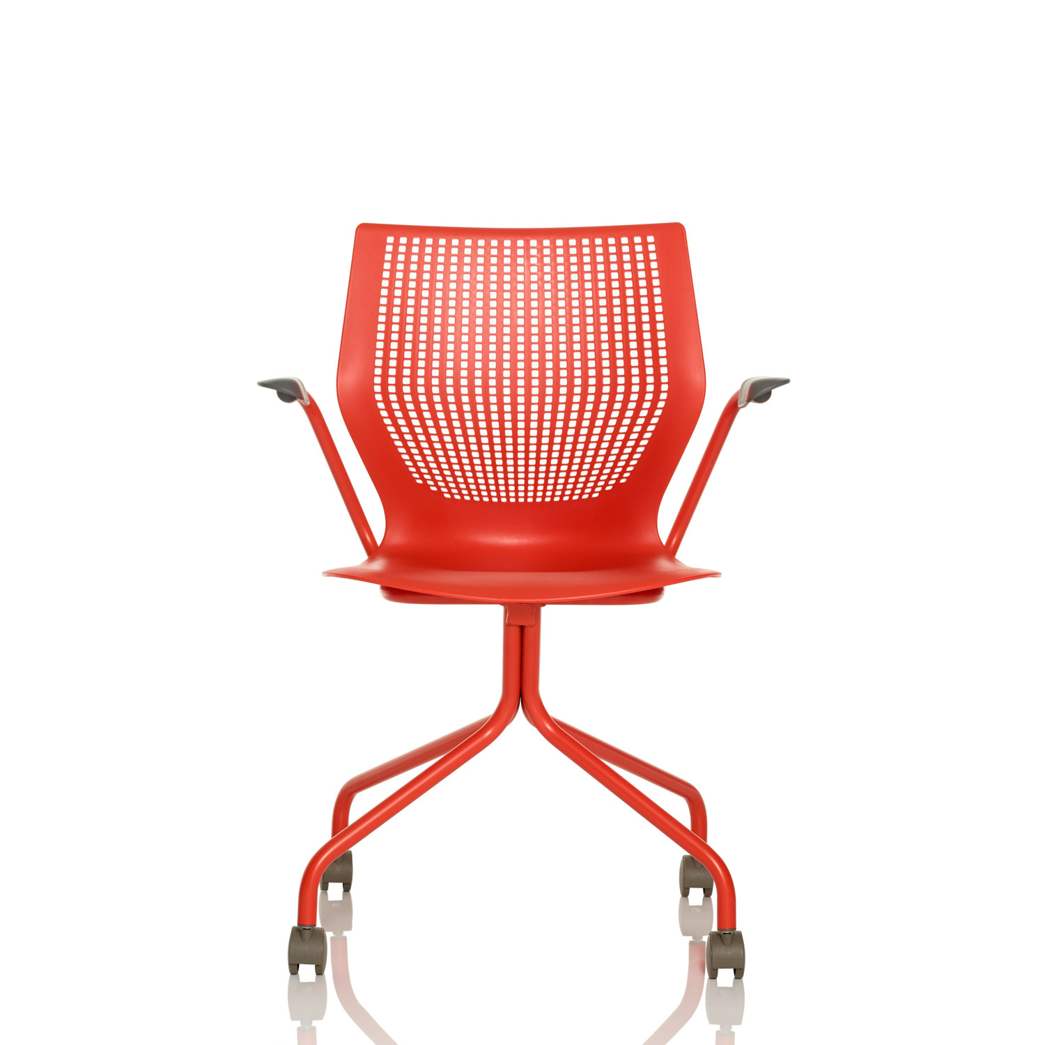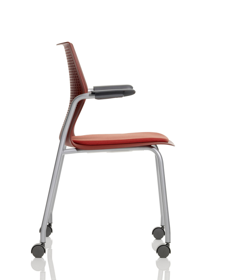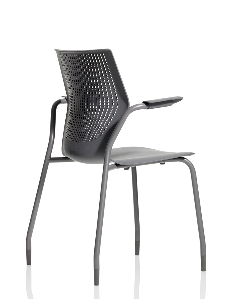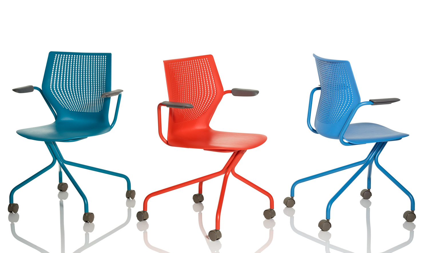 Therefore, each member of the MultiGeneration by Knoll family, which has continued to grow over the last 5 years, is designed to allow for and encourage movement, while still providing adequate support. The shape and material of the shell give the chairs a buoyancy that prevents the user from feeling “locked in” while the arm and leg positions allow for 270 degrees of movement.
