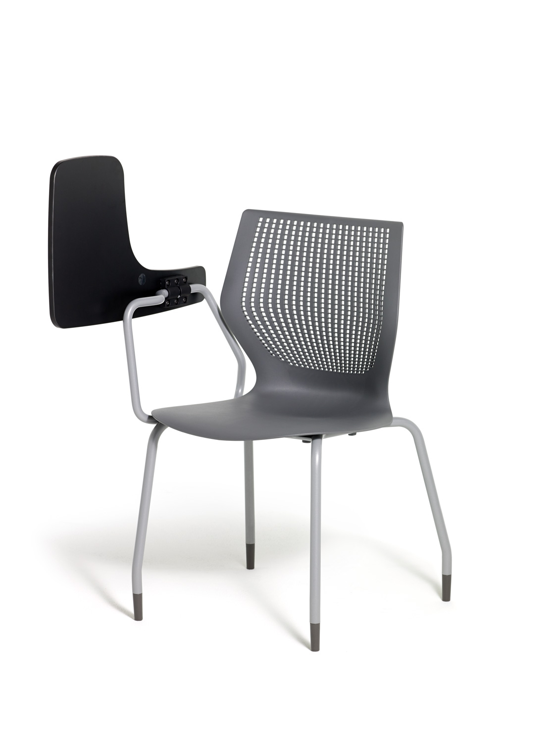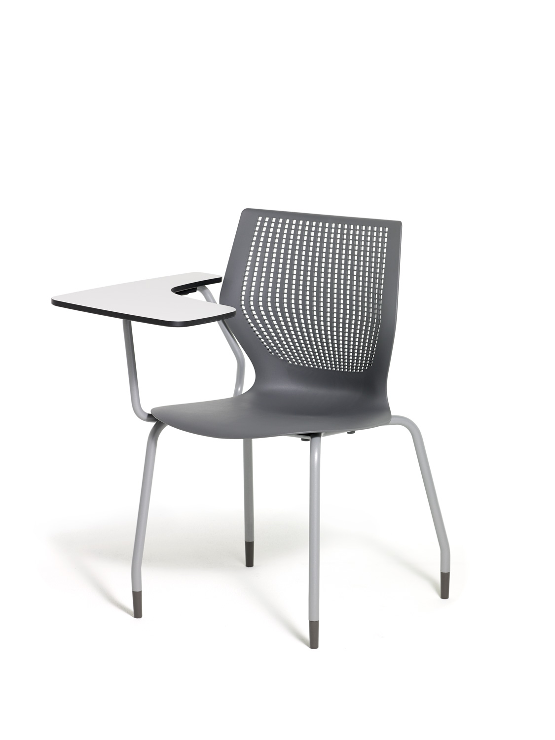 MultiGeneration by Knoll with the Stacking Base is available with a collection of accessories to make it a side chair for every setting. Optional tablet arm and book basket are ideal for training rooms and educational settings. Ganging mechanisms and the stacking dolly make setting up and breaking down assembly spaces simple and efficient.