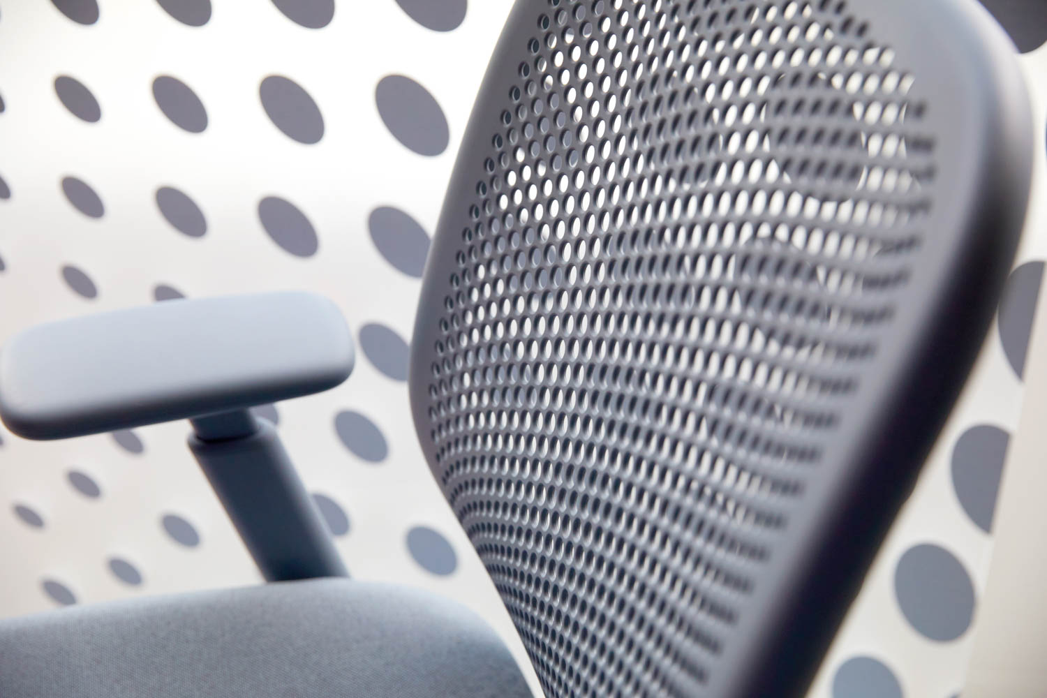 This chair provides a sensory experience with refined textures on every surface. The back and arm feel soft like suede, and the contrasting knobs and handles draw your attention for adjusting.