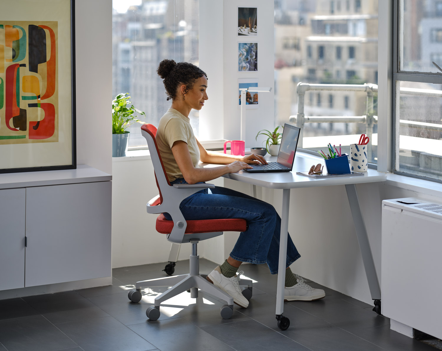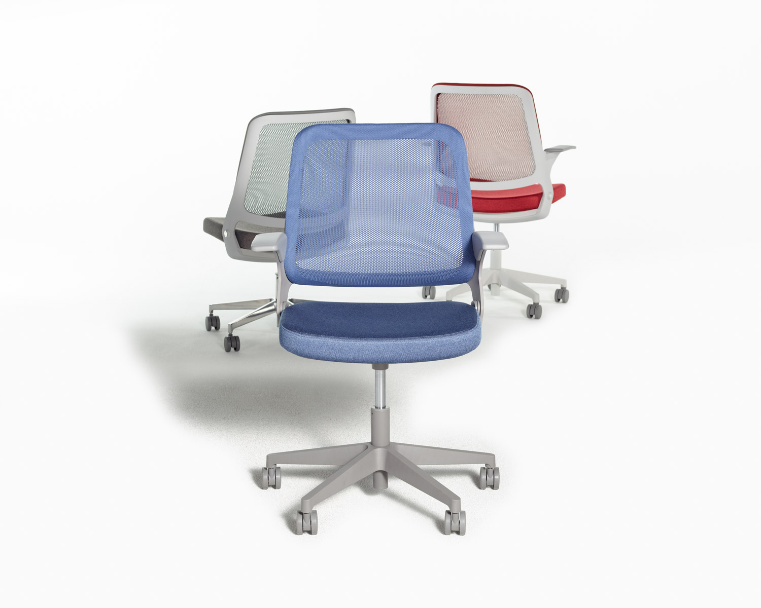 Work is more mobile and connected than ever before, increasing the variety of places you choose to sit and focus. Whether it’s at home, a temporary workspace or a touch-down area between meetings, Ollo with knit back ensures comfort and straightforward performance all while keeping you cool under pressure.