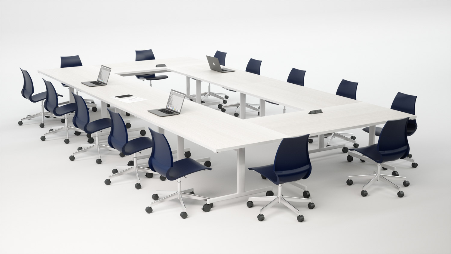 The Y-Leg is our four-sided table that works well for collaborative meetings or personal desking.