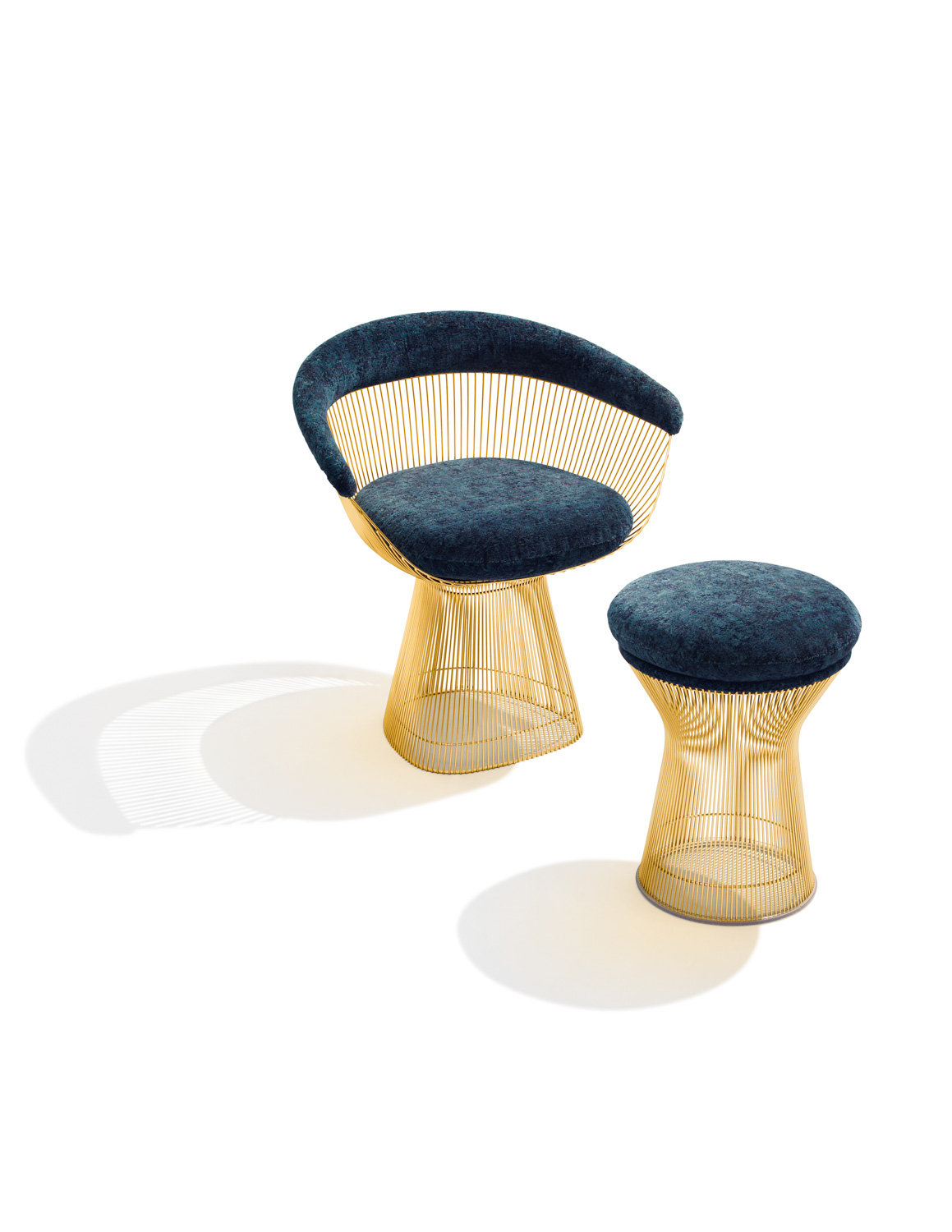 Originally introduced by Knoll in 1966, the Platner Collection is an icon of modern furniture. Platner personally formulated the production techniques for the complicated designs with each chair requiring over a thousand welds and more than one hundred cylindrical steel rods.