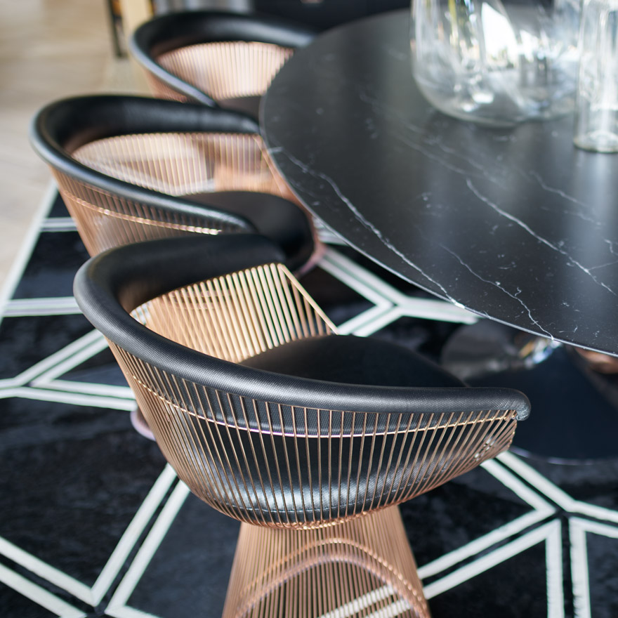 Introduced in 1966, the Platner Collection of sculpted wire furniture captured the “decorative, gentle, graceful” qualities that were beginning to infiltrate the modern vocabulary. The Collection’s unique, harmonious forms are created by welding hundreds of curved vertical steel rods to circular frames.