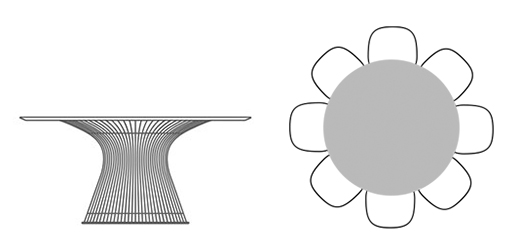With his experience in the firm of Eero Saarinen and Associates, it is not surprising that the mantel for the second generation of pedestal and wire furniture fell on the creative shoulders of Warren Platner. Reflecting a dramatic shift in cultural values, modernism became more expressive in the 1960s. Platner felt there was an opportunity to merge the competing aesthetics of the time.