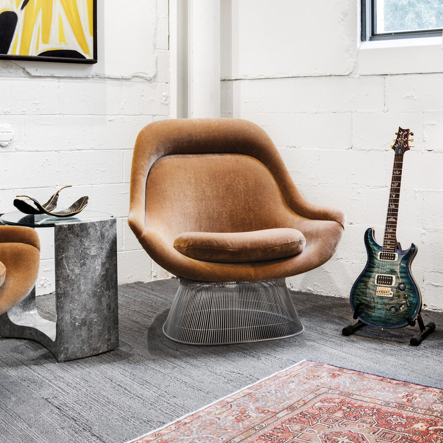 Originally introduced by Knoll in 1966, the Platner Collection is an icon of modern furniture. Platner personally formulated the production techniques for the complicated designs with each chair requiring over a thousand welds and more than one hundred cylindrical steel rods.