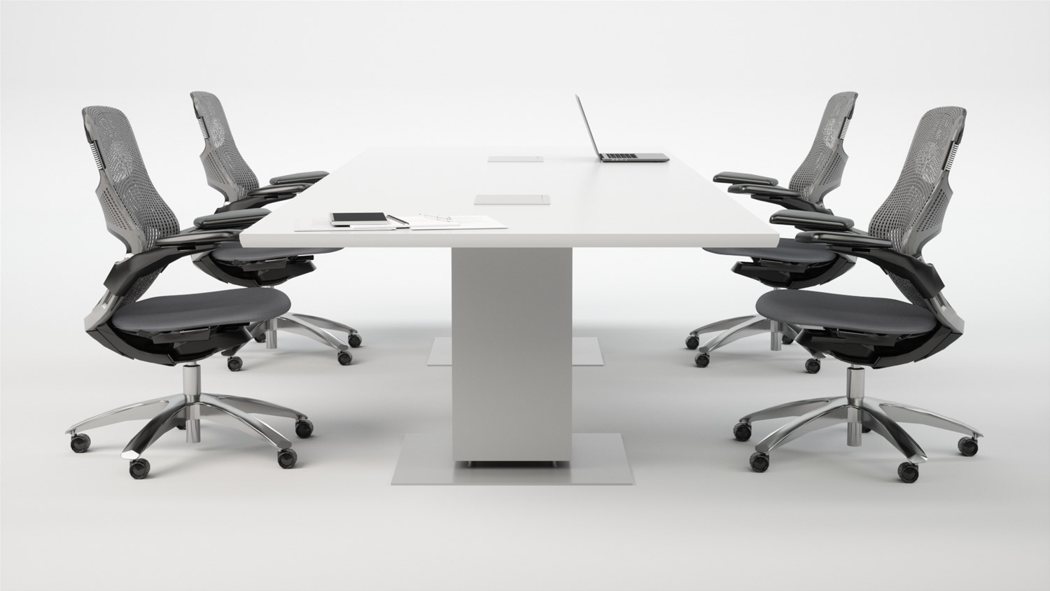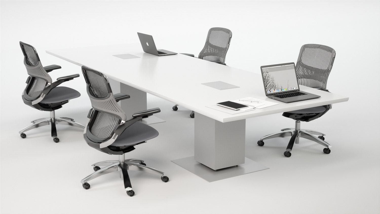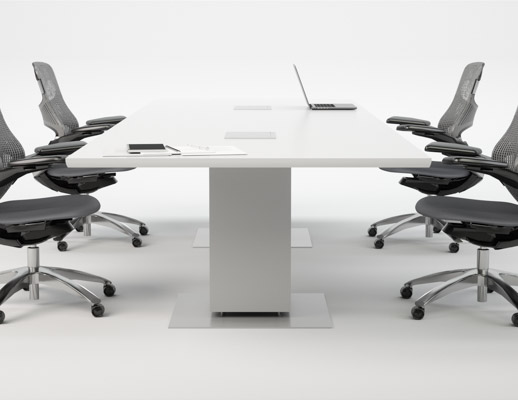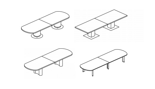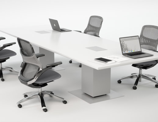 Drum, Peanut, and Rectangular bases house cables and electrical components behind easily removable panels. The signature aluminum Propeller Conference leg easily manages vertical wiring directly to the tabletop.