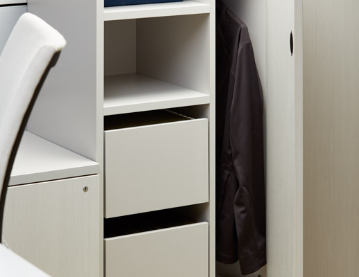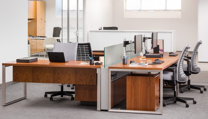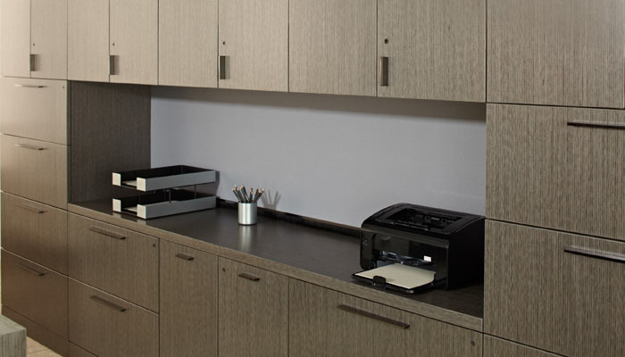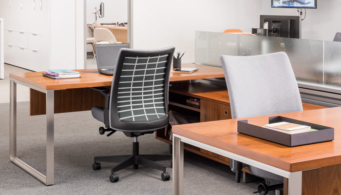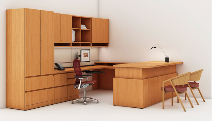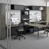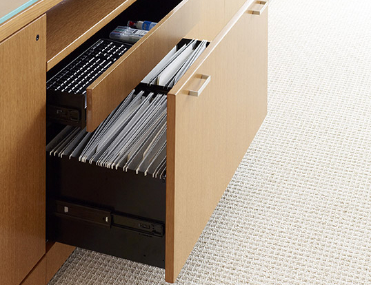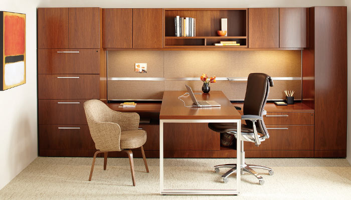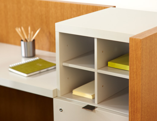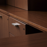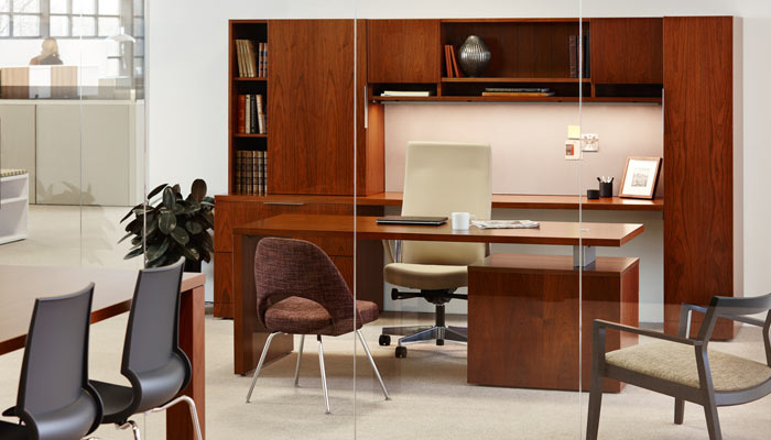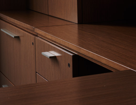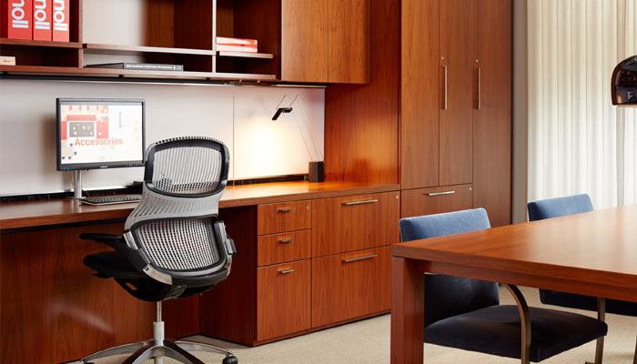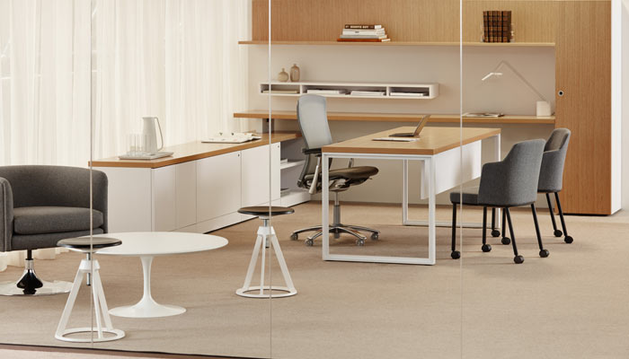 Brian Graham: “We’ve really rechristened the classic look for the modern workplace. We’ve created a series of freestanding cabinetry and credenzas that are lifted off the ground, so they communicate lightness in scale and a fluidity that are very modern. The same exact storage componentry comes into the open office, which really fulfills the original Reff promise of total, seamless integration of the workplace.”
