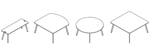 Rockwell Unscripted Easy Tables are a collection of work tables in a wide range of sizes and shapes. Friendly rounded corners, handholds and optional casters allow people to define how a space is configured and reconfigured, creating informal, multi-use spaces like flexible workshops, meeting areas and reading rooms.