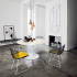 Saarinen was assisted by Don Petitt, of Knoll’s Design Development Group, who introduced several ingenious methods of model making. Together with a Knoll design research team, they worked out the problems arising in production. Full scale models became furniture and, with family and friends acting as “guinea pigs,” the furniture was tested in the dining room and living room of the Saarinen house in Bloomfield Hills.