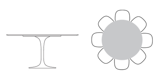 With the Pedestal Collection, Eero Saarinen vowed to eliminate the "slum of legs" found under chairs and tables with four legs. He worked first with hundreds of drawings, which were followed by ¼ scale models. Since the compelling idea was to design chairs that looked good in a room, the model furniture was set up in a scaled model room the size of a doll house.