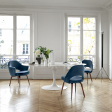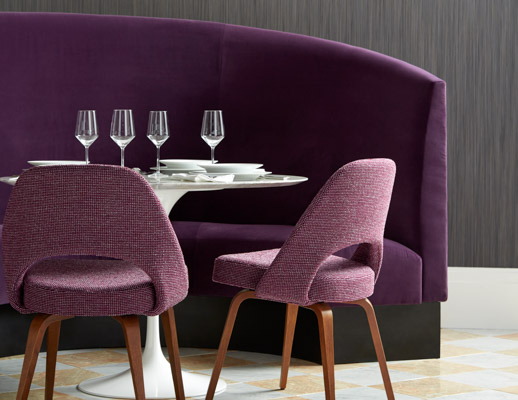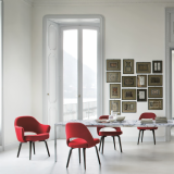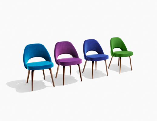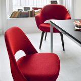 After completing the Womb Chair, Saarinen returned his focus to task seating, scaling down the concept and form of the womb into arm and armless chairs. Introduced as the 71 and 72 Series, the chairs replaced Florence Knoll’s model 43 chairs as the Planning Unit’s go-to seating solution. The iconic chair, often referred to as “that chair with the hole in the back,” has been a staple of the Knoll portfolio for more than 60 years.