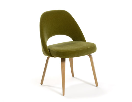 After winning the Museum of Modern Art Organic Design Competition with Charles Eames for their experiments with bent plywood in 1941, Eero Saarinen was eager to continue exploring the possibilities of a chair that achieved comfort through the shape of its shell, not the depth of its cushioning. Initially, he began the investigation with designs for smaller fiberglass task chairs, but changed direction when Florence Knoll approached him and asked, “Why not take the bull by the horns and do the big one first? I want a chair that is like a basket full of pillows…something I can curl up in.” While that’s not exactly where Saarinen ended up, the suggestion inspired one of the most iconic, and comfortable, chairs of the modern furniture movement, The Womb Chair.