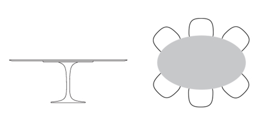 With the Pedestal Collection, Eero Saarinen vowed to eliminate the "slum of legs" found under chairs and tables with four legs. He worked first with hundreds of drawings, which were followed by ¼ scale models. Since the compelling idea was to design chairs that looked good in a room, the model furniture was set up in a scaled model room the size of a doll house.