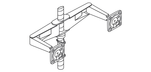 The Sapper 50 monitor arm integrates the defining features of the collection, including interchangeability, adaptability and intuitive adjustment, and expands the capabilities of the collection to include support for two larger monitors and flat screen televisions of up to 30 pounds each.