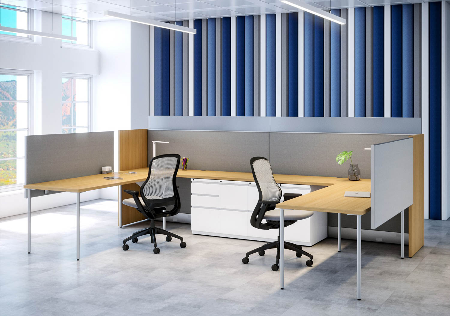 Series 2 Universal Privacy Screens provide space division for focused work while aiding with noise reduction. Series 2 Screens also feature integrated Slatwall that enables users to free up space at the desk by attaching accessory and storage solutions directly to the screen. Easily retrofittable, Series 2 Universal Privacy Screens extend below the worksurface providing a built-in modesty panel.