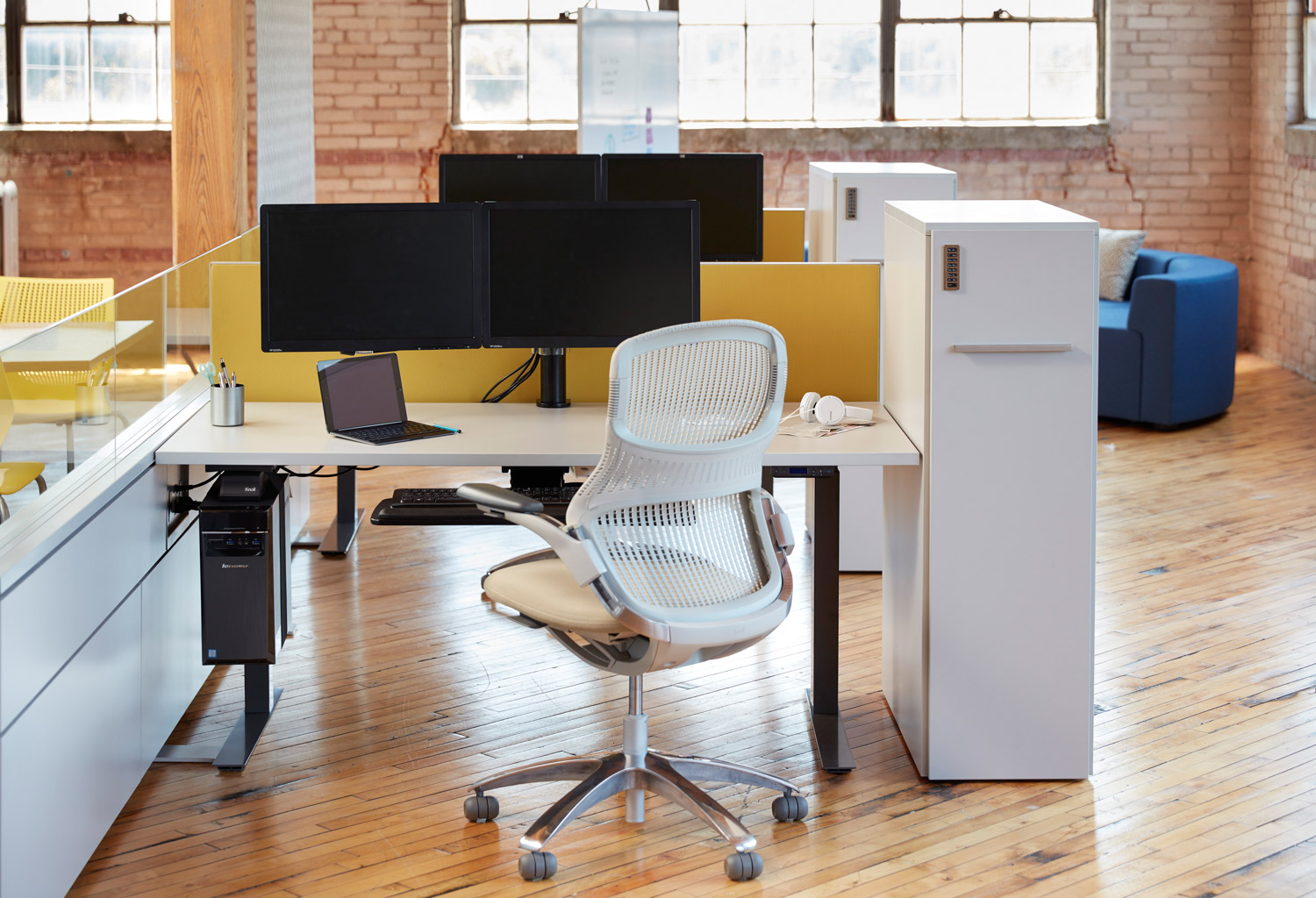 Tone is a comprehensive collection of height-adjustable tables, offering dozens of shapes, sizes, colors and configurations to outfit any space. As a standalone table or together with monitor arms, keyboard trays and privacy screens, Tone promotes well-being by allowing users to keep moving throughout the day.