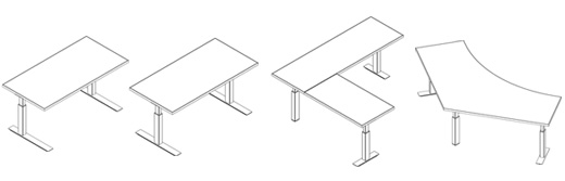 COMPREHENSIVE SCOPE. Tone Height-Adjustable tables are available with 6 base types, including Extended Electric, Electric, Extended Handcrank, Handcrank, Pin-Set and Fixed, in a range of shapes and sizes to meet a variety of planning needs.