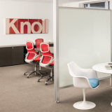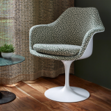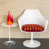 Saarinen was assisted by Don Petitt, of Knoll’s Design Development Group, who introduced several ingenious methods of model making. Together with a Knoll design research team, they worked out the problems arising in production. Full scale models became furniture and, with family and friends acting as “guinea pigs,” the furniture was tested in the dining room and living room of the Saarinen house in Bloomfield Hills.