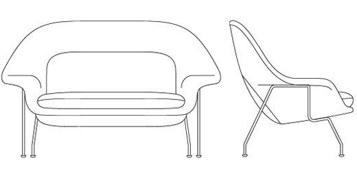 A Womb Chair fit for two. We are very pleased to welcome the Womb Settee back to the Knoll line up. The design has been out of production, but never out of style. The double-wide design is the perfect modern refuge for the living room, bedroom or office.