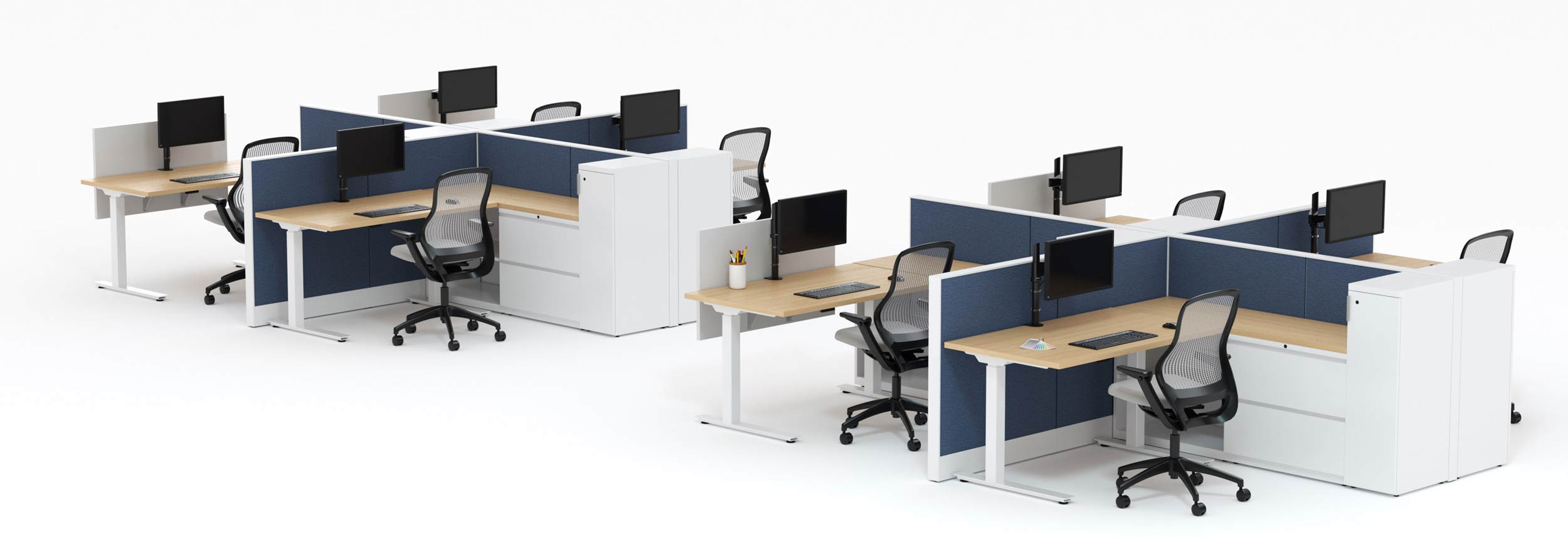 The modern office requires dimensional, dynamic planning that supports a broader range of activities than ever before. Service Wall, Fence, Interpole and Horsepower, in combination with freestanding or height-adjustable tables, or integrated into any system, deliver flexible alternatives to panel-based layouts and support the ever-changing technologies found in today's office.